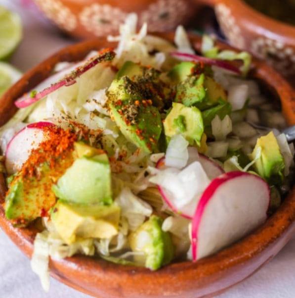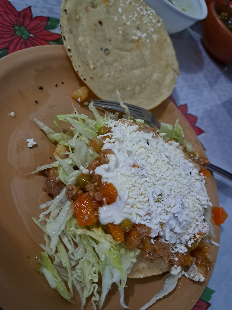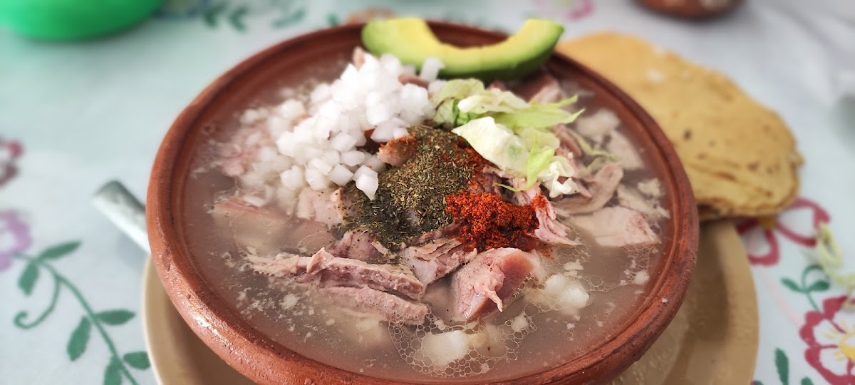 Está muy rico el pozole, y las tostadas de tinga, las aguas frescas de maracuyá y jamaica riquísimas